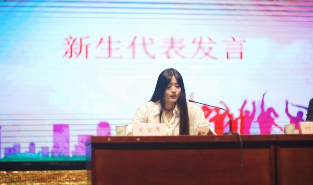 新生代表石萌蕾在发言中表达了荣幸与决心,她以诗意的语言号召同窗:“以时间为墨,珍惜流光;以未知为卷,深耕专业;以友谊为装帧,收获同行。”