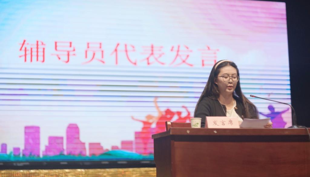 辅导员蔡逸莹老师与新生共勉金句“愿你们心中有梦想,脚下有力量,眼里永存星辰光芒,前路必有方向。”她承诺将做好大家的青春同路人,并深情寄语:“让我们携手并肩,在大学的崭新赛道上,奋力跑出你们这一代最精彩的青春轨迹!”