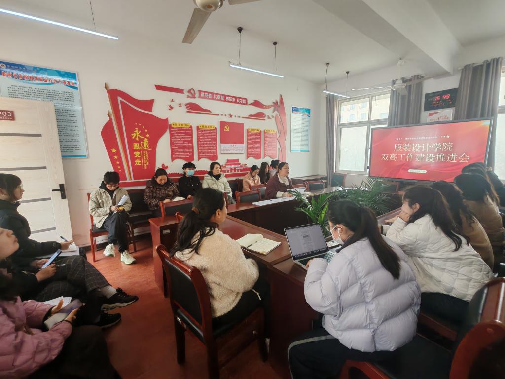 2026年3月11日下午,服装设计学院在会议室召开双高建设工作推进会。学院副院长卢向飞主持会议,双高建设各板块负责人及建设团队全体成员参加会议,凝心聚力部署推进双高建设各项重点工作。