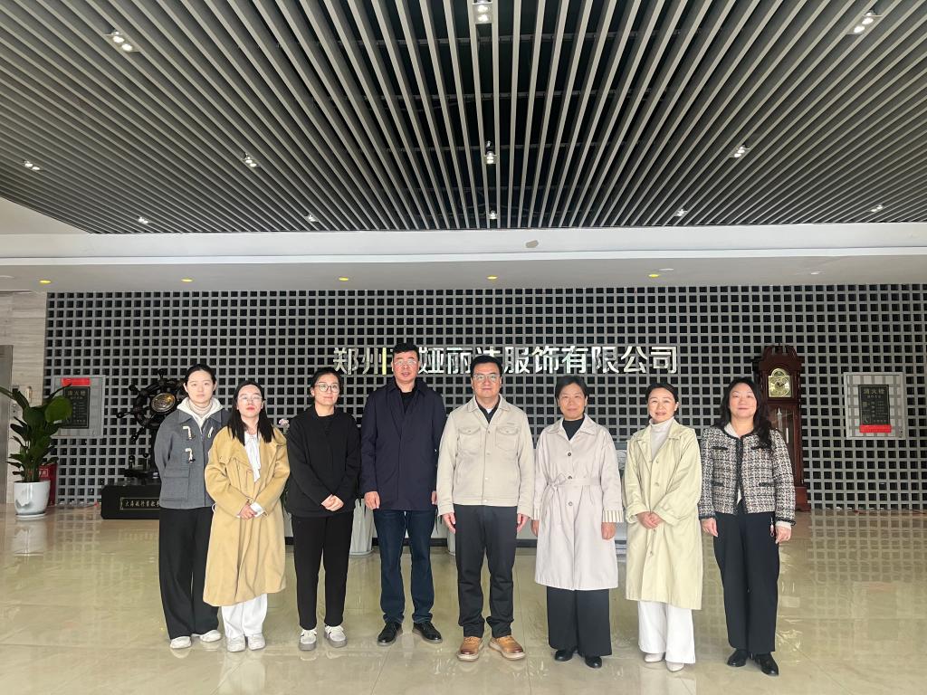 近日,副校长石晓带领服装设计学院党总支书记李晓云、名誉院长白志刚、副院长卢向飞一行,赴郑州市娅丽达服饰有限公司及河南省服装行业协会开展“访企拓岗促就业”专项调研,围绕深化产教融合、精准对接人才供需等议题进行深入交流。